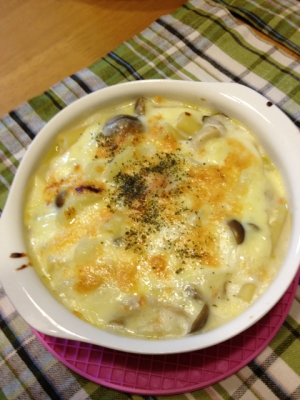 フライパン一つで超簡単 10分でできるぶっ込み きのことベーコンのグラタン ひろこぱんhirokopan Note
